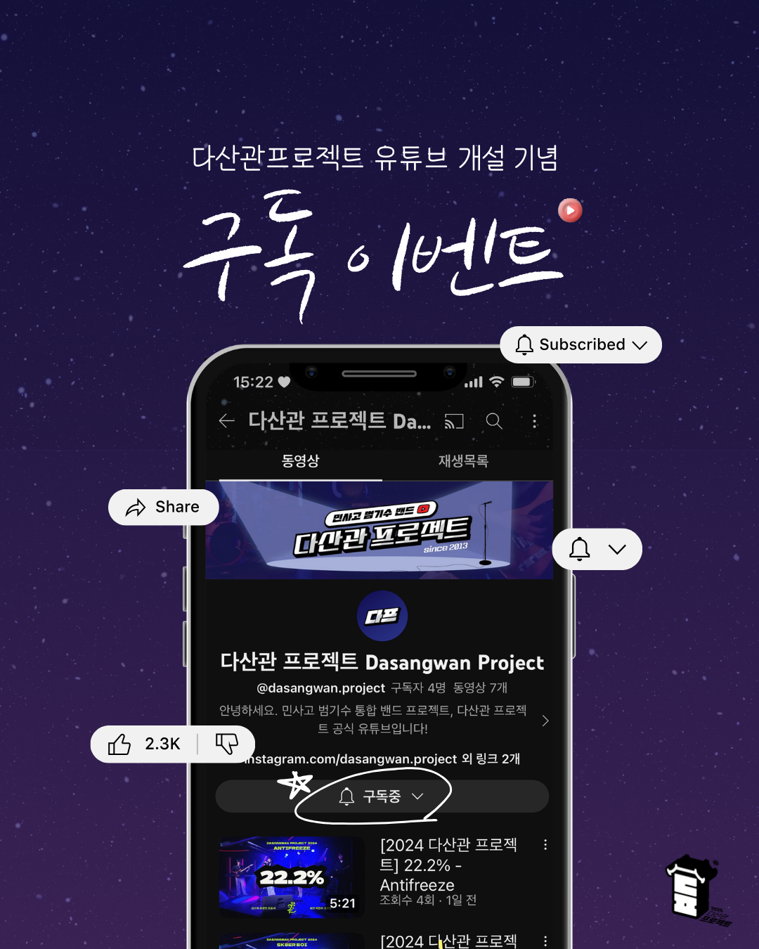 I worked as a graphic designer and marketer for Dasangwan Project, a band music festival held annually by over 300 alumni of my high school, the Korean Minjok Leadership Academy.